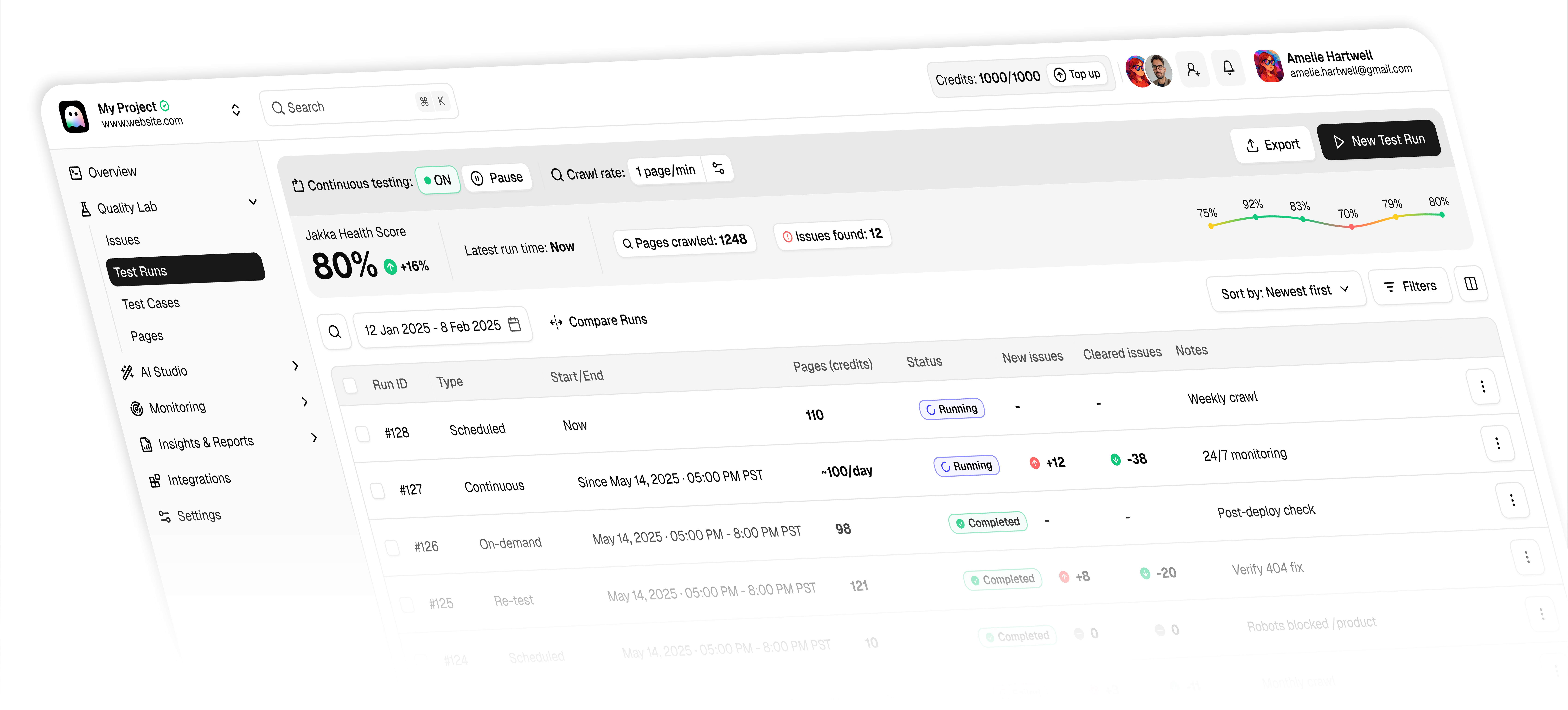 Pay only for AI work. Scheduled monitoring, crawling, and issue detection are included in your plan. Tokens are consumed only when you use AI for recommendations, content generation, or analysis.
