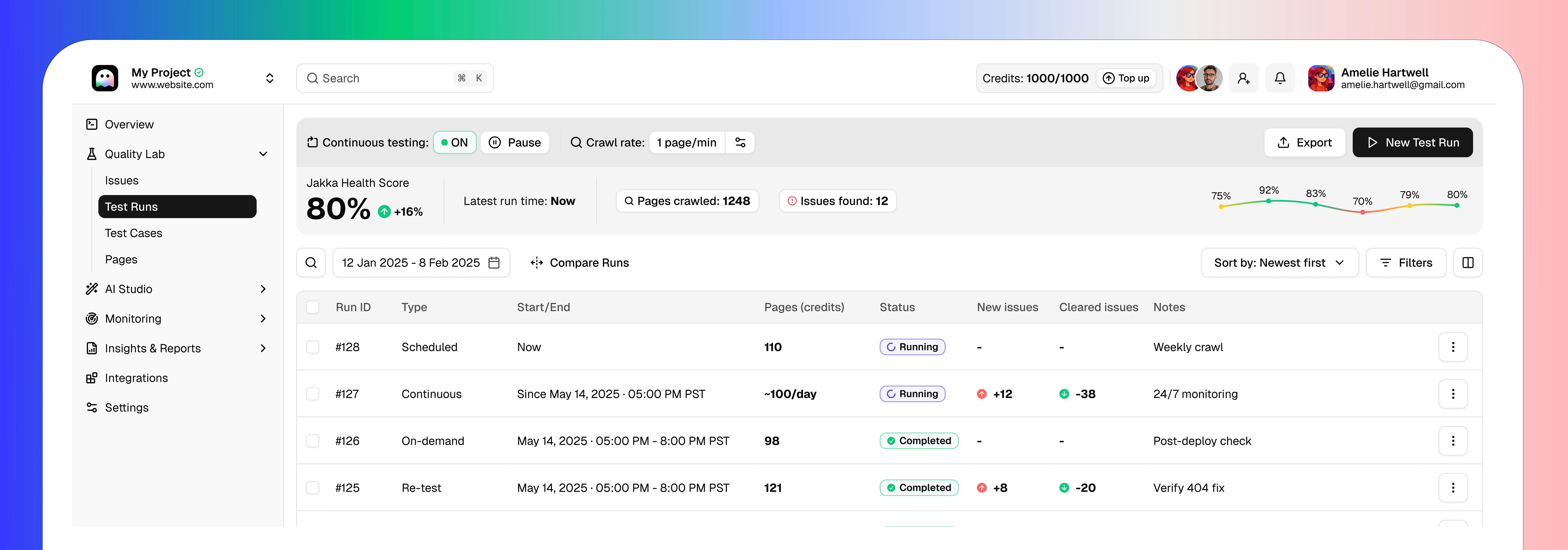 Jakka Bot is our automated web crawler that powers the Quality Lab testing engine. Like Googlebot crawls the web to understand and rank content, Jakka Bot crawls your website to test everything from SEO and accessibility to performance, security, content quality, and user experience.